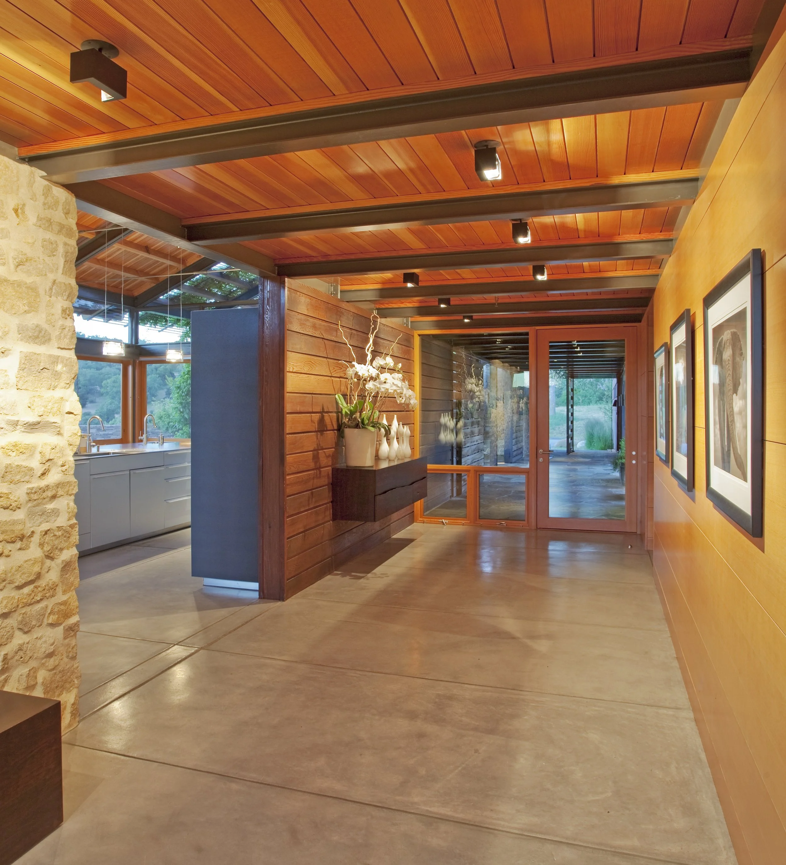 The combination of rust, glass and stone materials are the hallmark of the nationally recognized firm, Lake Flato Architects. After completing the client’s summerhouse, it became their full time home.The combination of rust, glass and stone materials are the hallmark of the nationally recognized firm, Lake Flato Architects. After completing the client’s summerhouse, it became their full time home.
